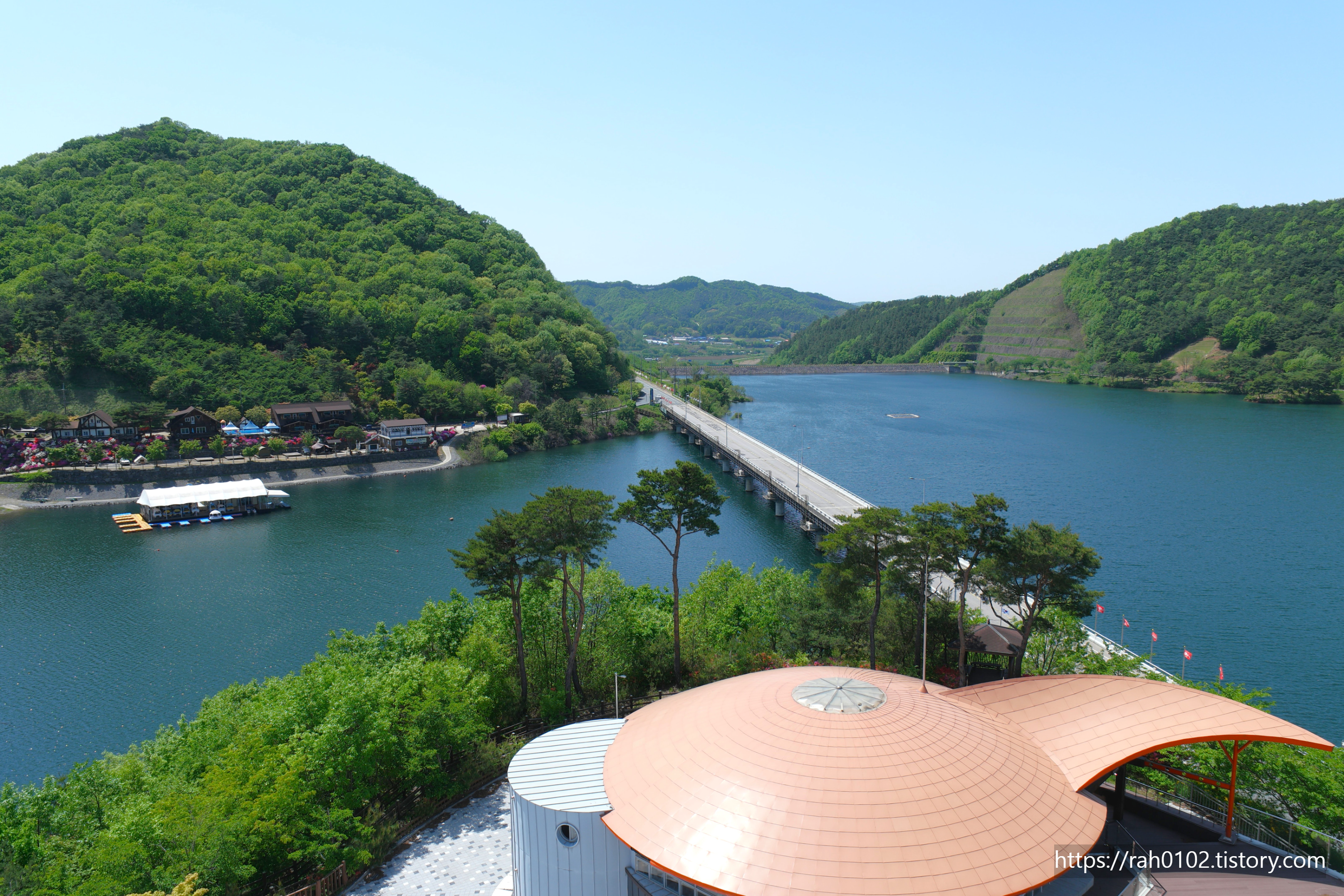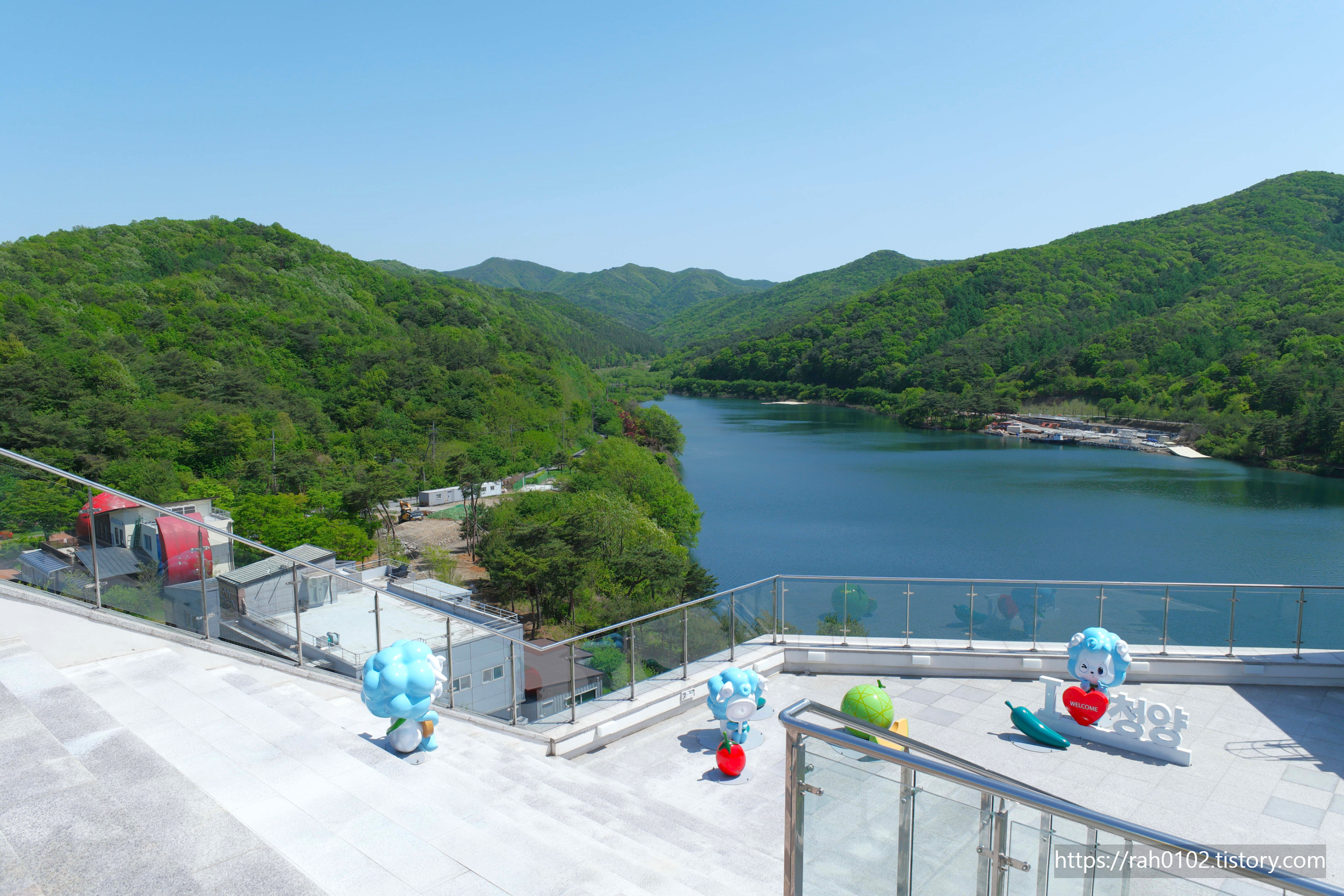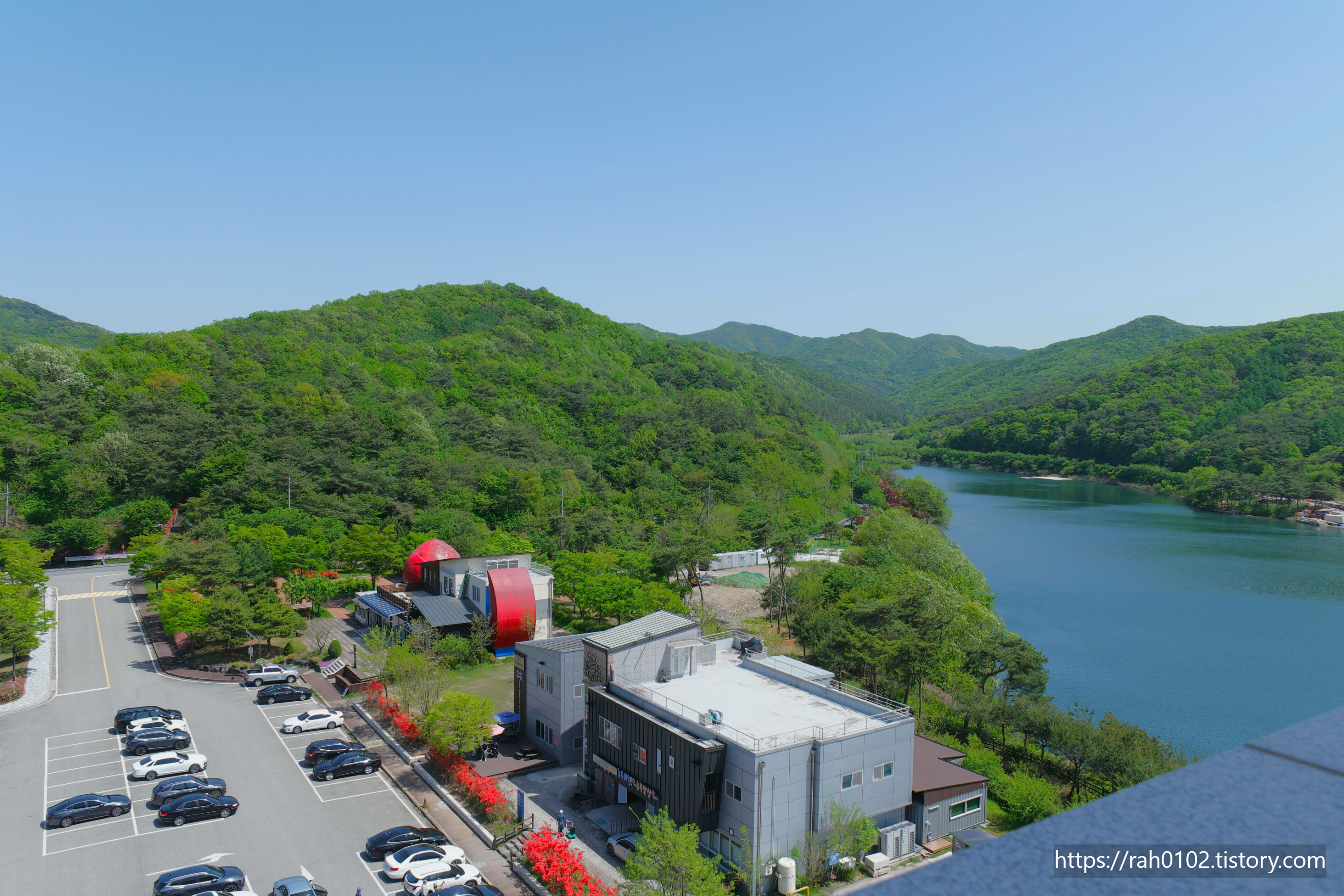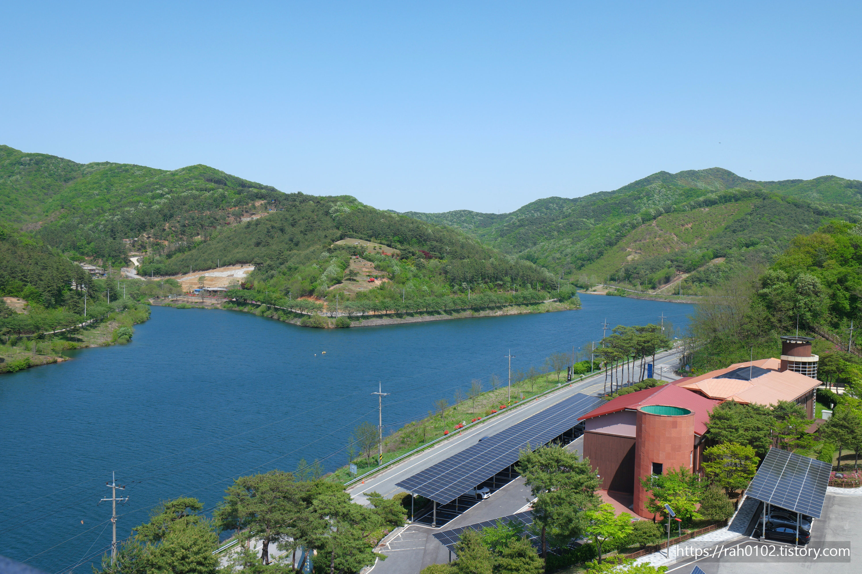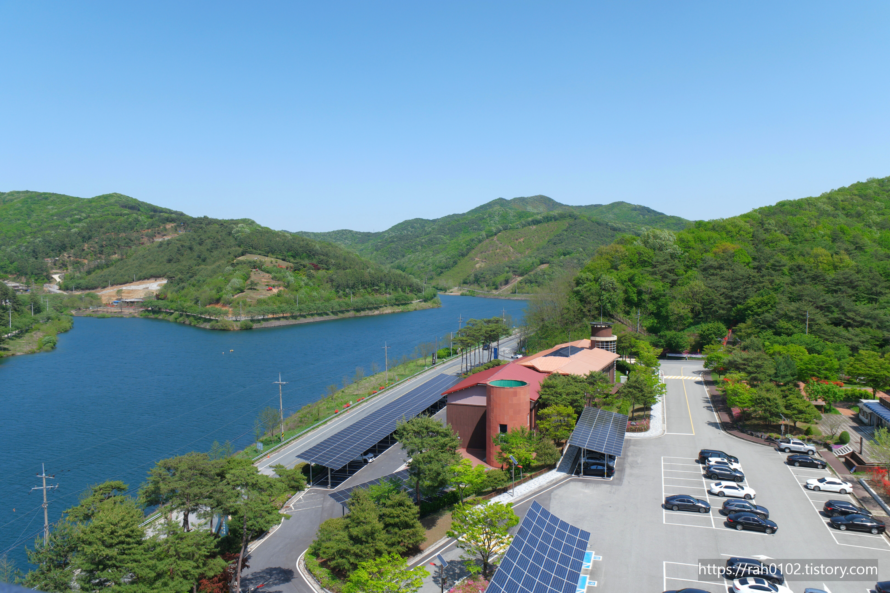 오늘 제가 구기자타운을 찾은 이유는, 이곳에 있는 칠갑타워 옥상에 올라가 칠갑저수지와 그 주변 경치를 구경하기 위해서 입니다. 칠갑타워는 일반에게 정식으로 개방된 것 같지는 않았지만 출입문이 열려 있어서 들어갈 수 있었습니다.