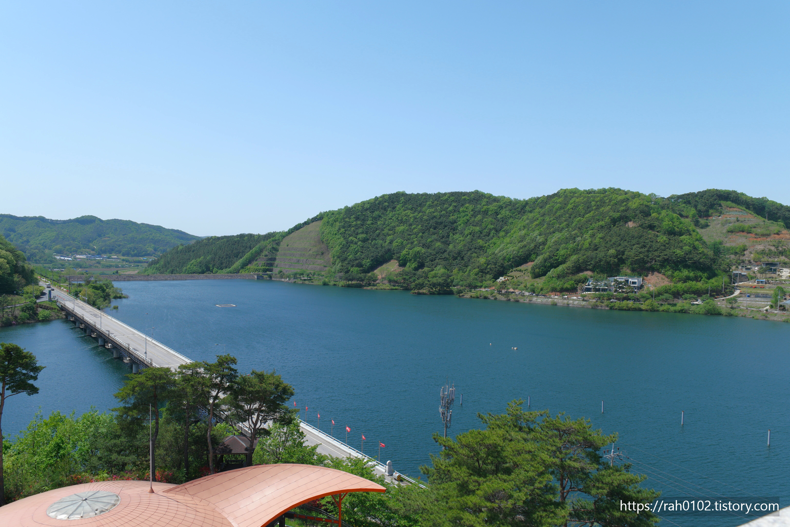 칠갑저수지를 가로지르는 저 다리는 칠갑대교입니다.