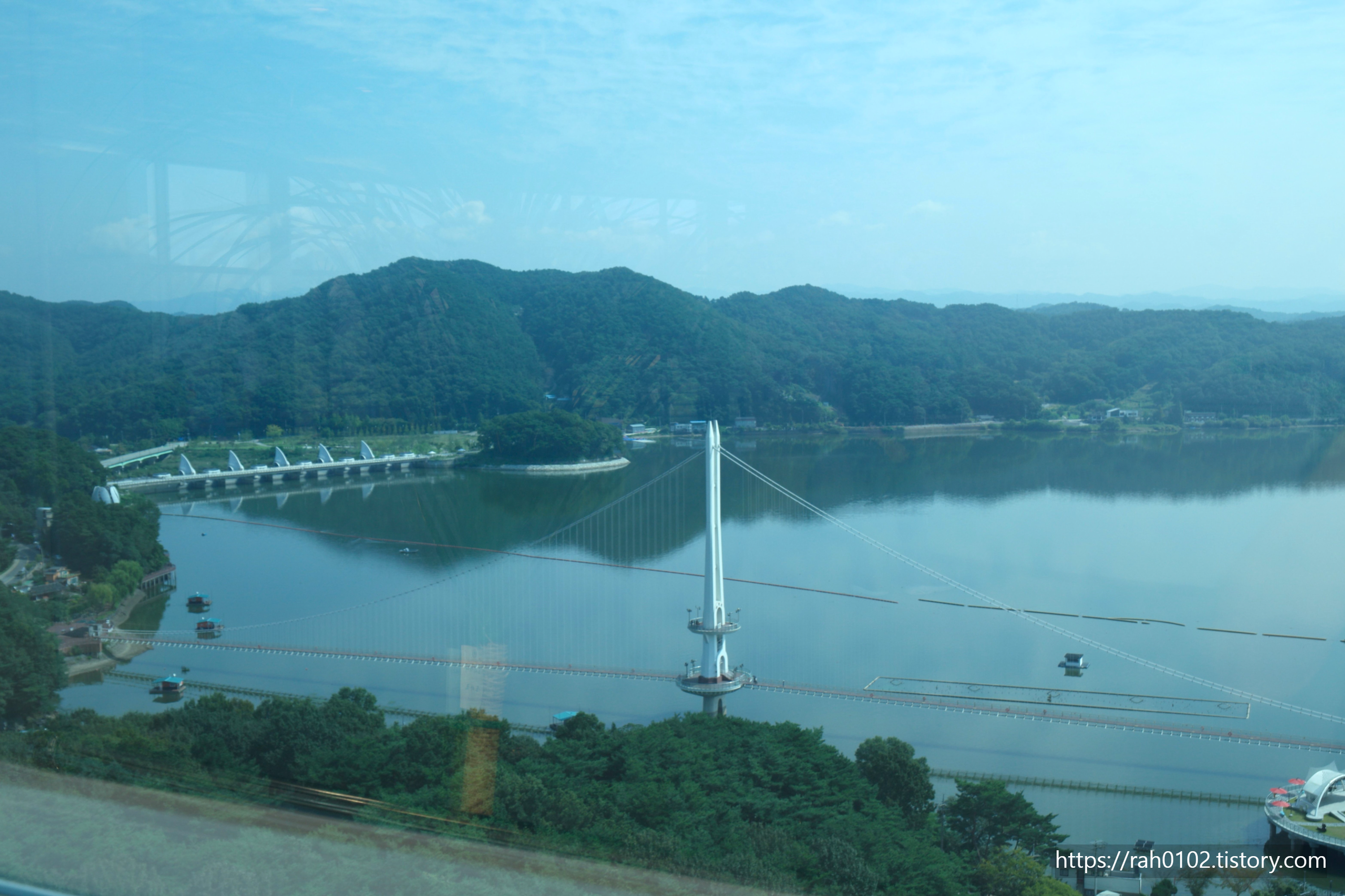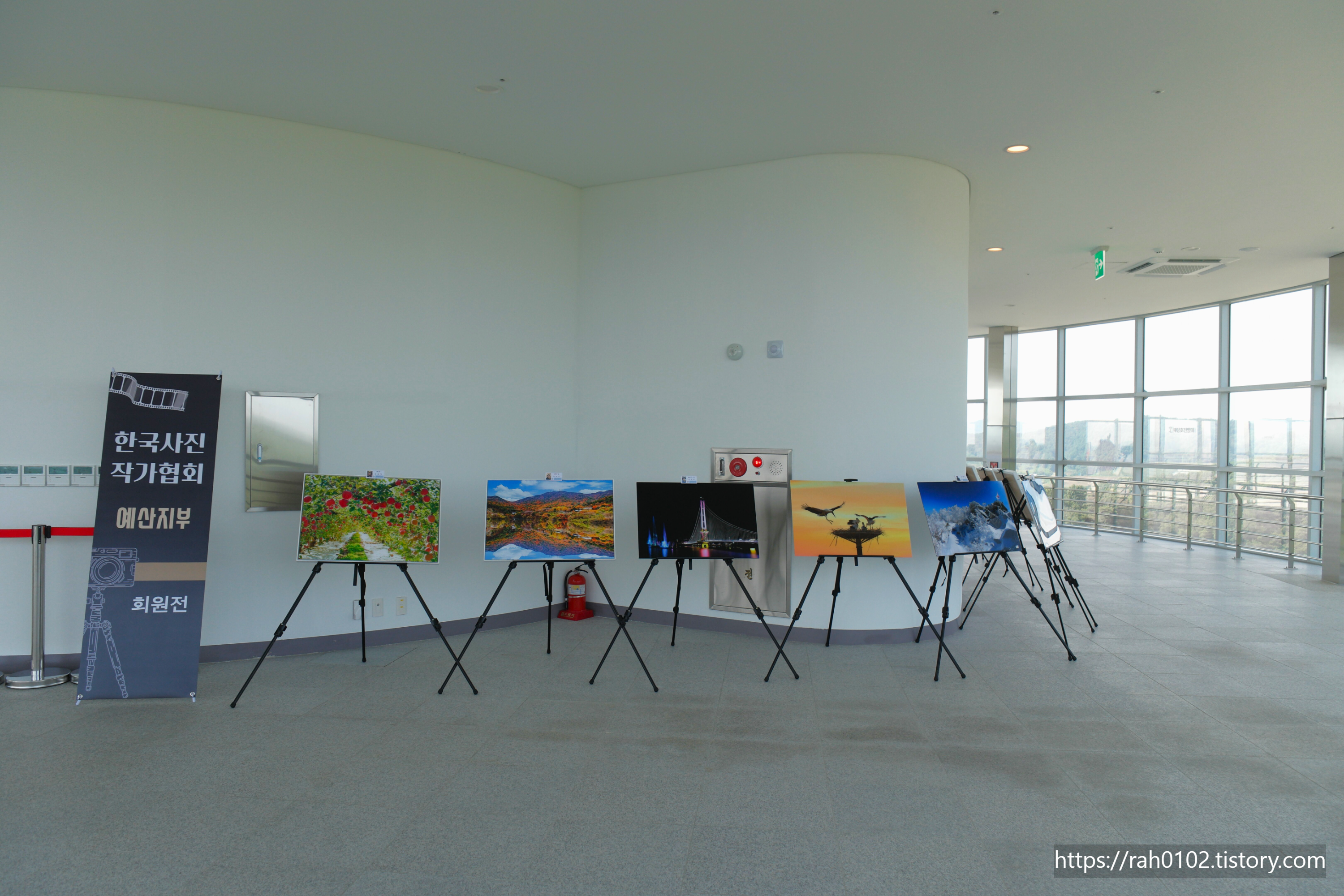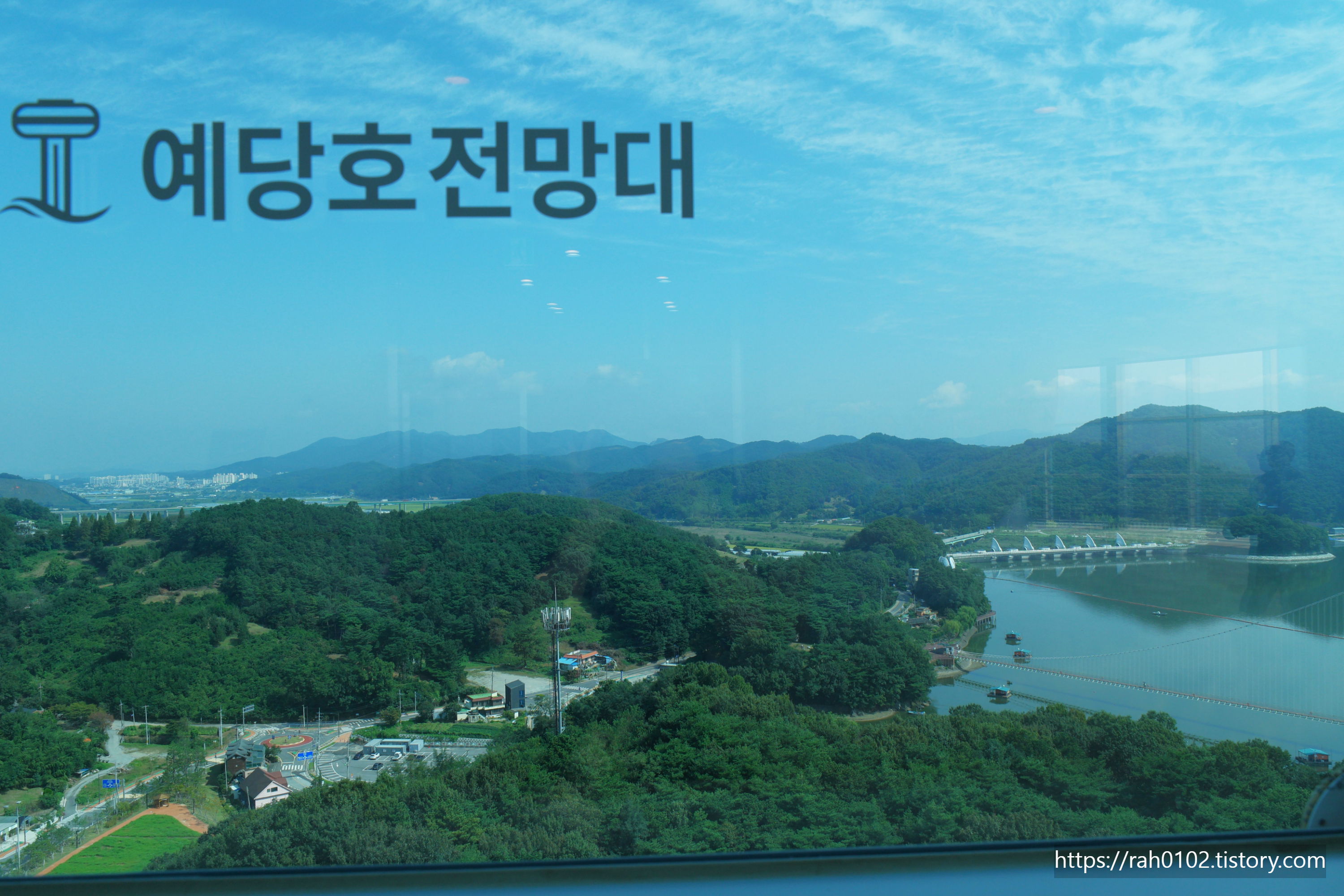 높이 70m의 예당호 전망대는 사과 모양을 하고 있으며, 이곳에 오르면 예당호 전경과 그 주변 경치를 한눈에 조망할 수 있다고 합니다.