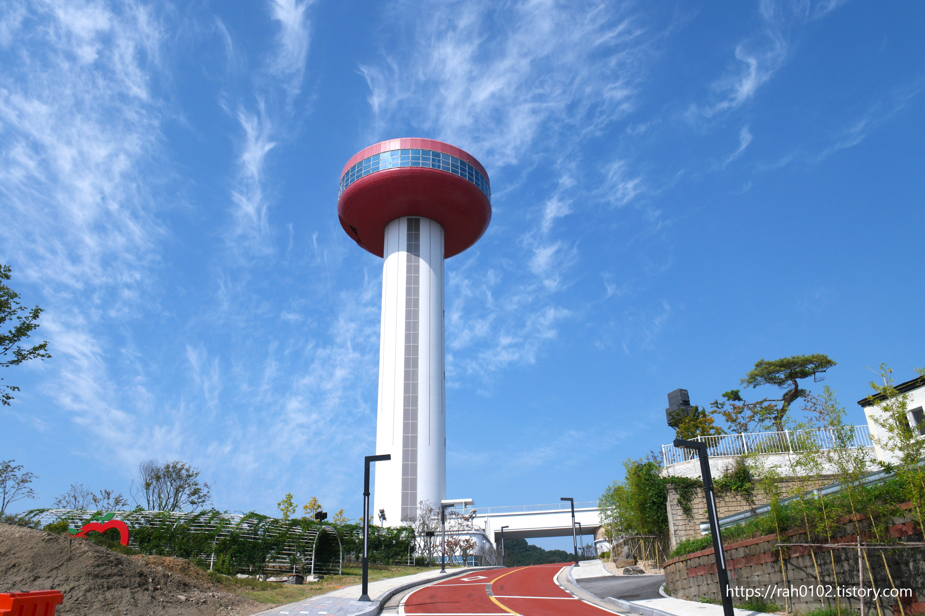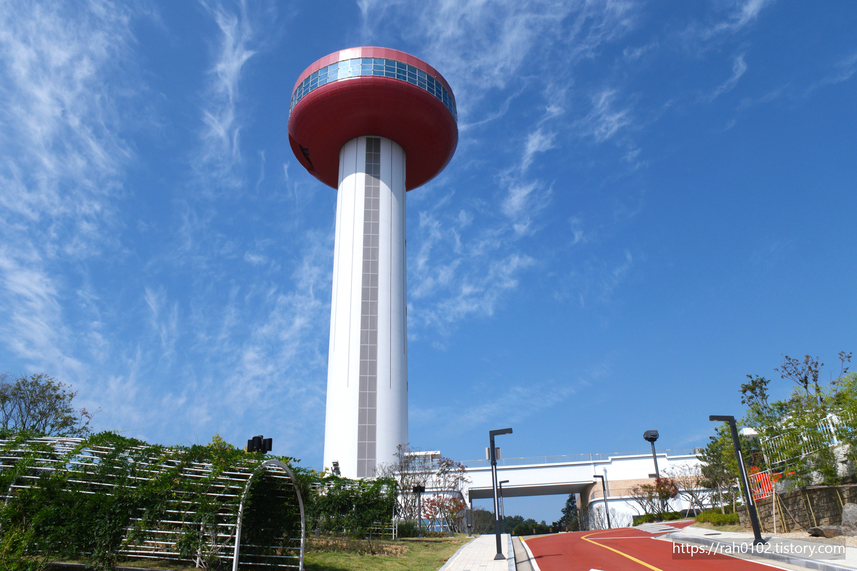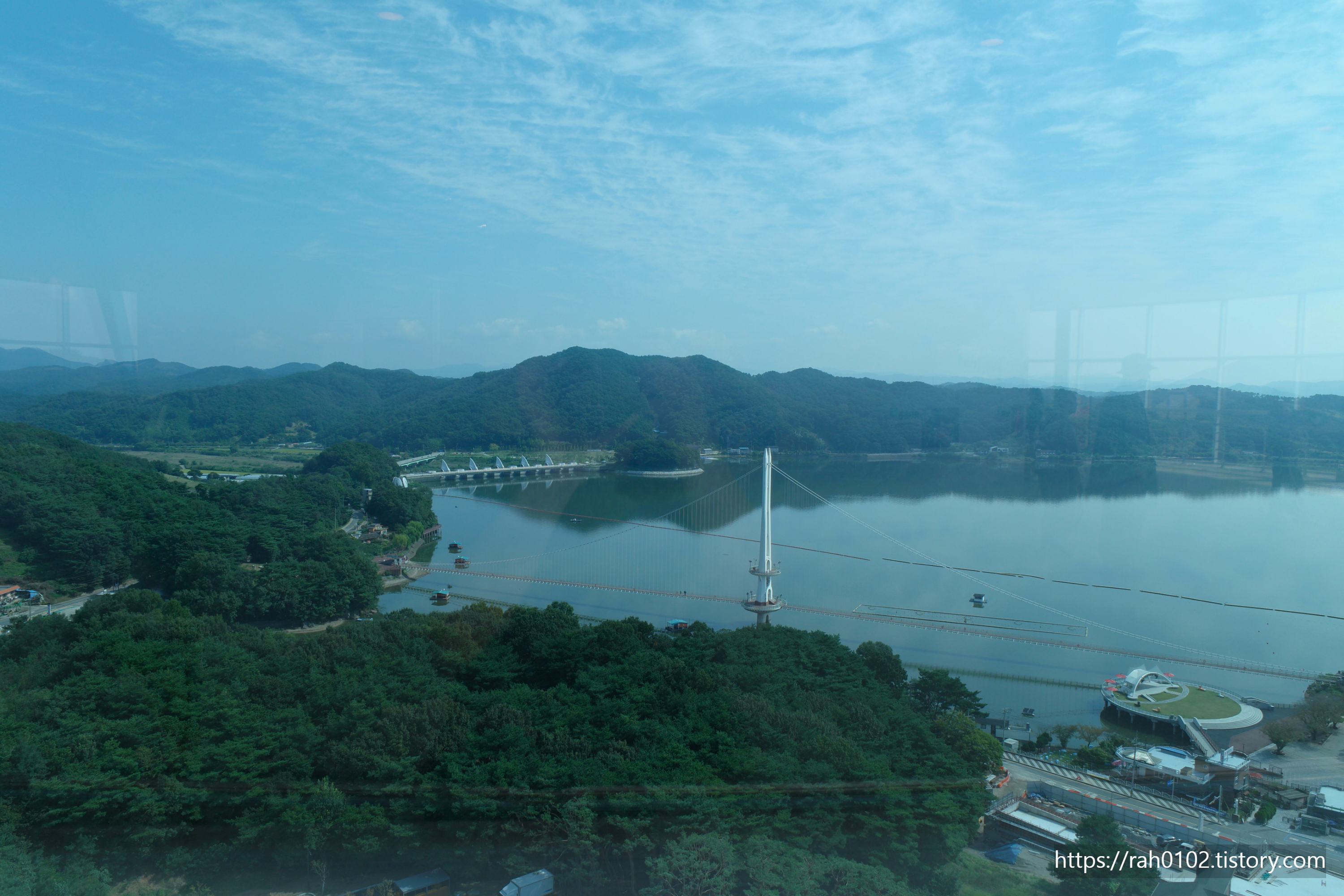 높이 70m의 예당호 전망대는 사과 모양을 하고 있으며, 이곳에 오르면 예당호 전경과 그 주변 경치를 한눈에 조망할 수 있다고 합니다.