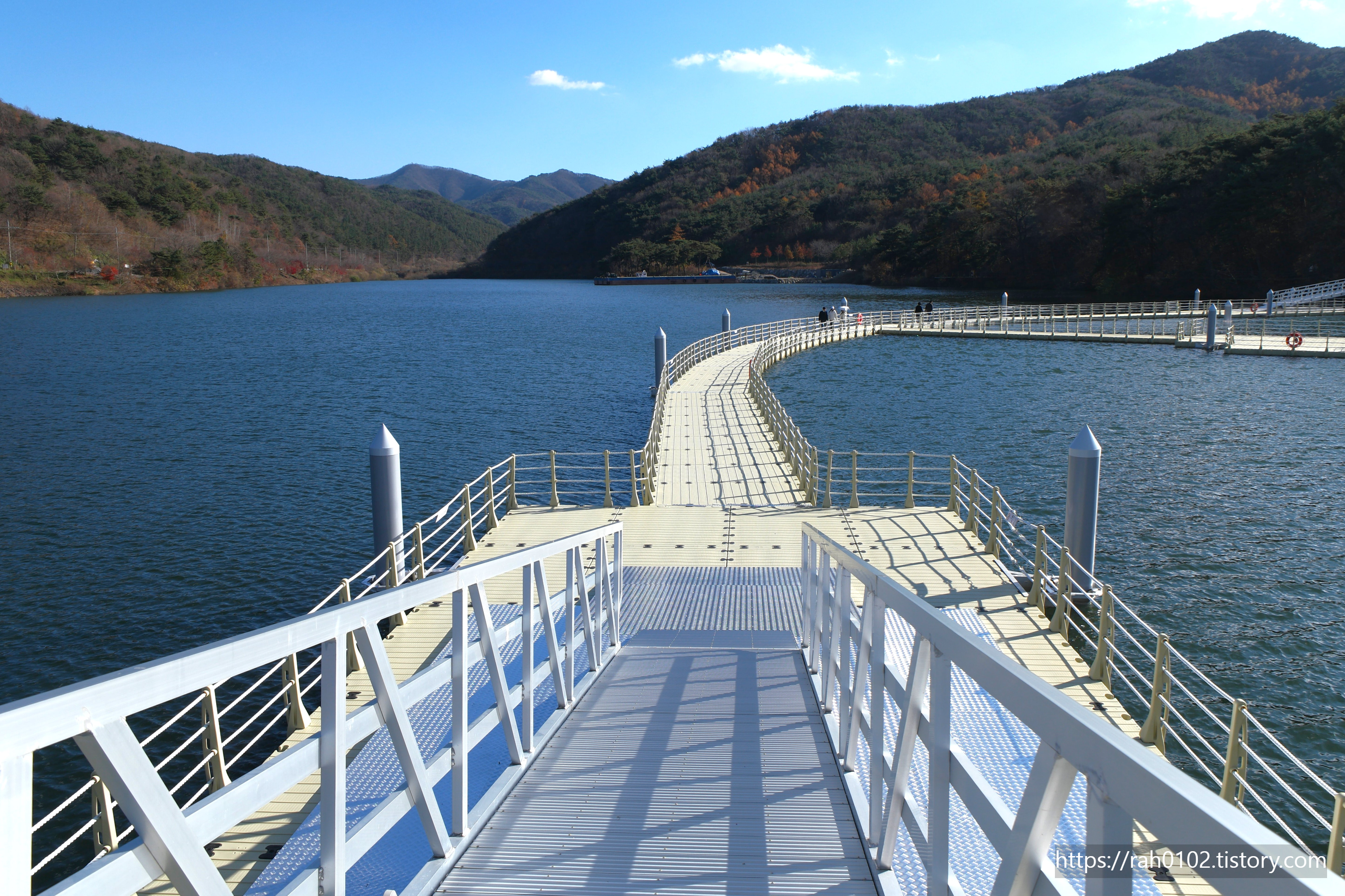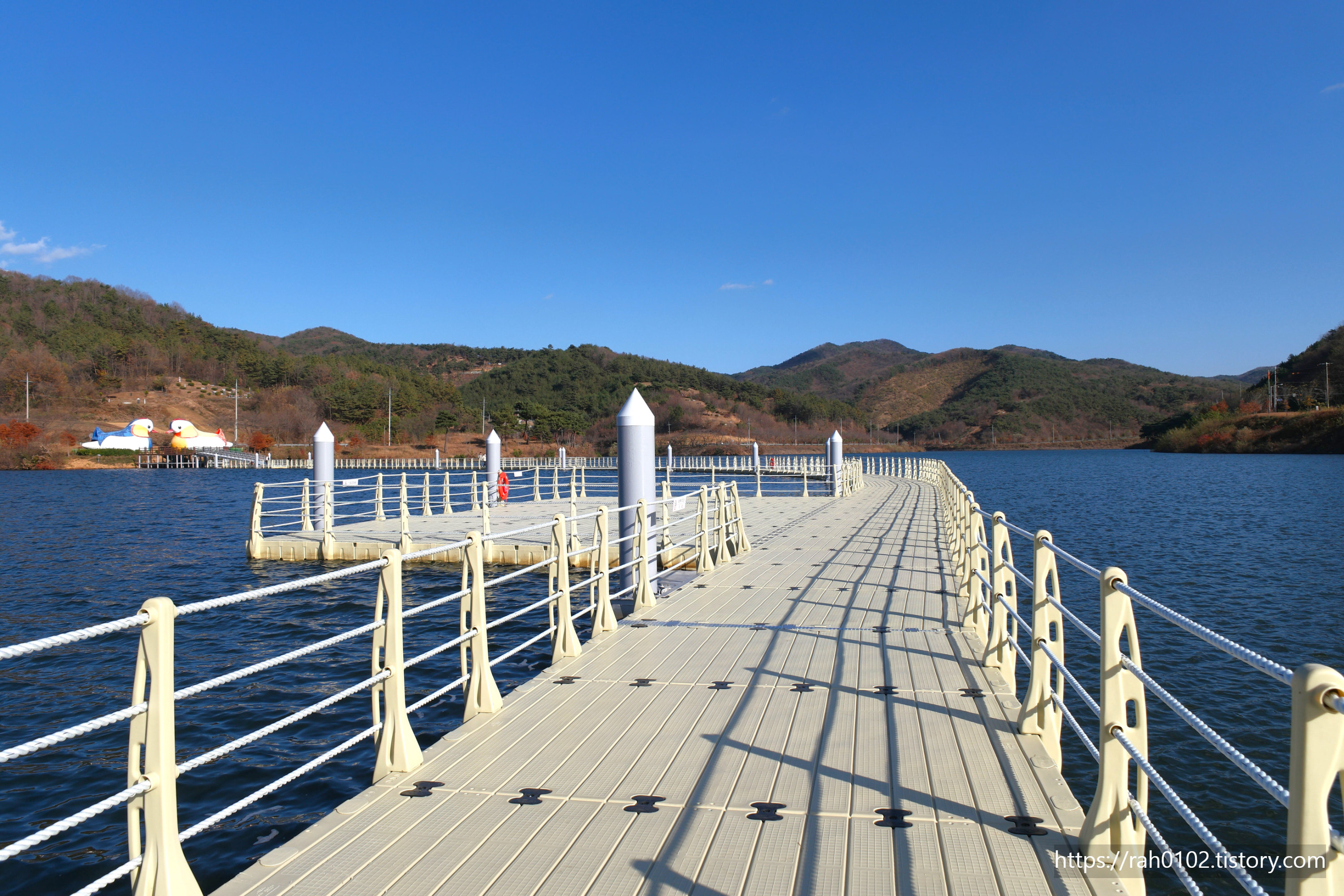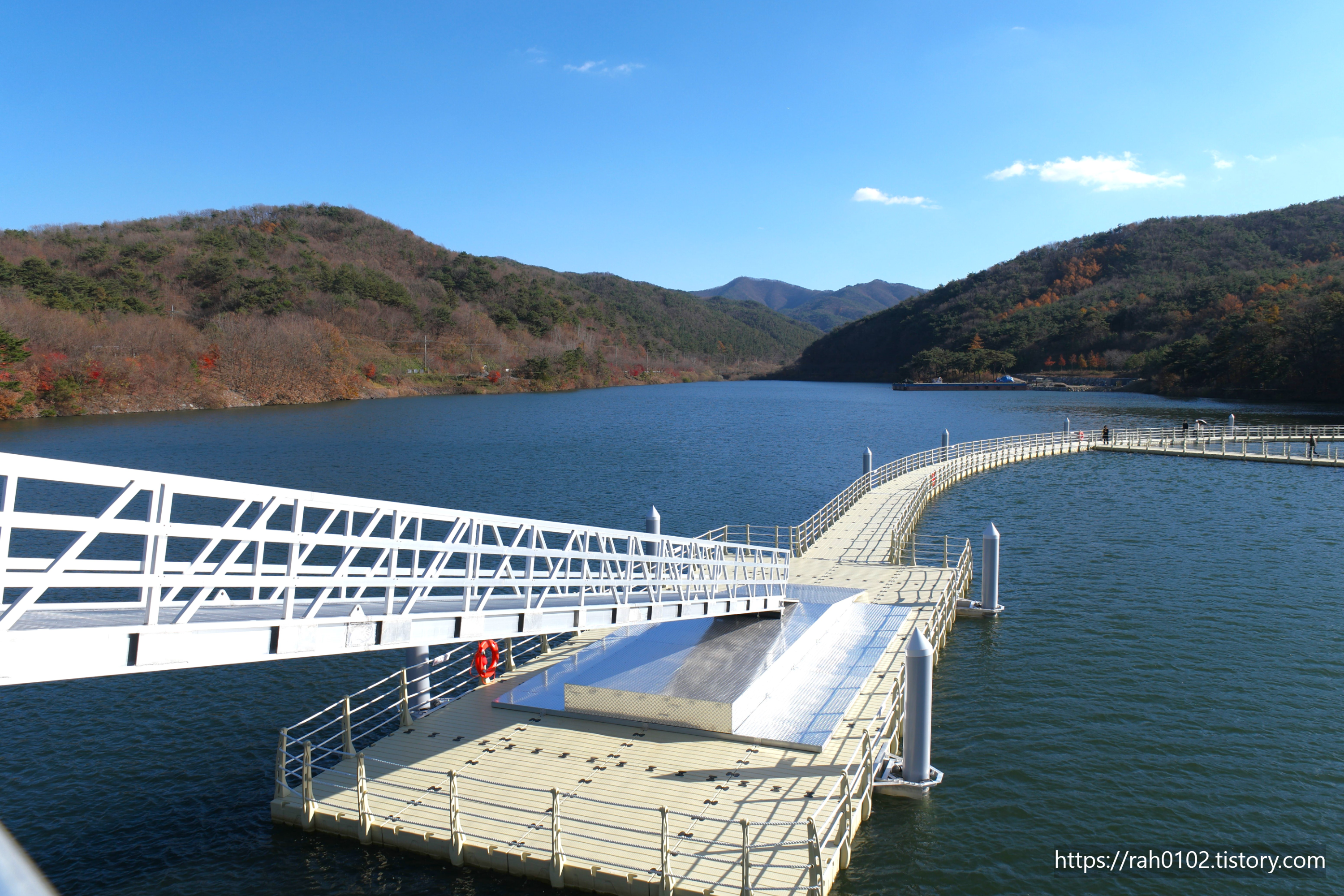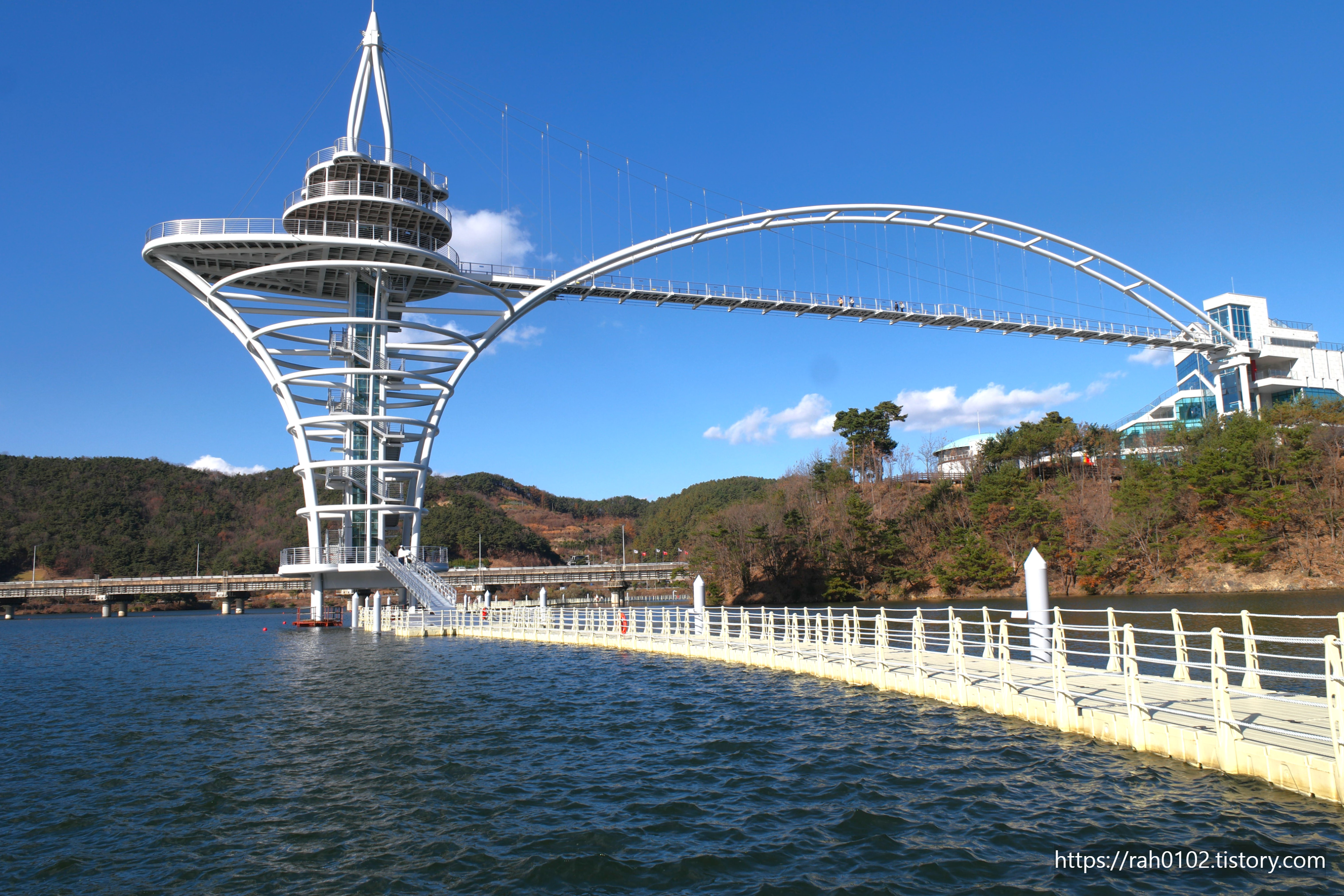 호수 위에 설치되어 있는 보행교를 걷기 위하여 엘리베이터를 타고 전망대 아래로 내려왔습니다. 현장 안내 직원분의 말에 의하면, 전망대를 기준으로 2개의 보행교가 설치되어 있는데, 한 곳의 길이는 150m이며, 다른 한 곳의 길이는 450m라고 했습니다. 먼저 150m 짜리 보행교를 걷기로 했습니다.