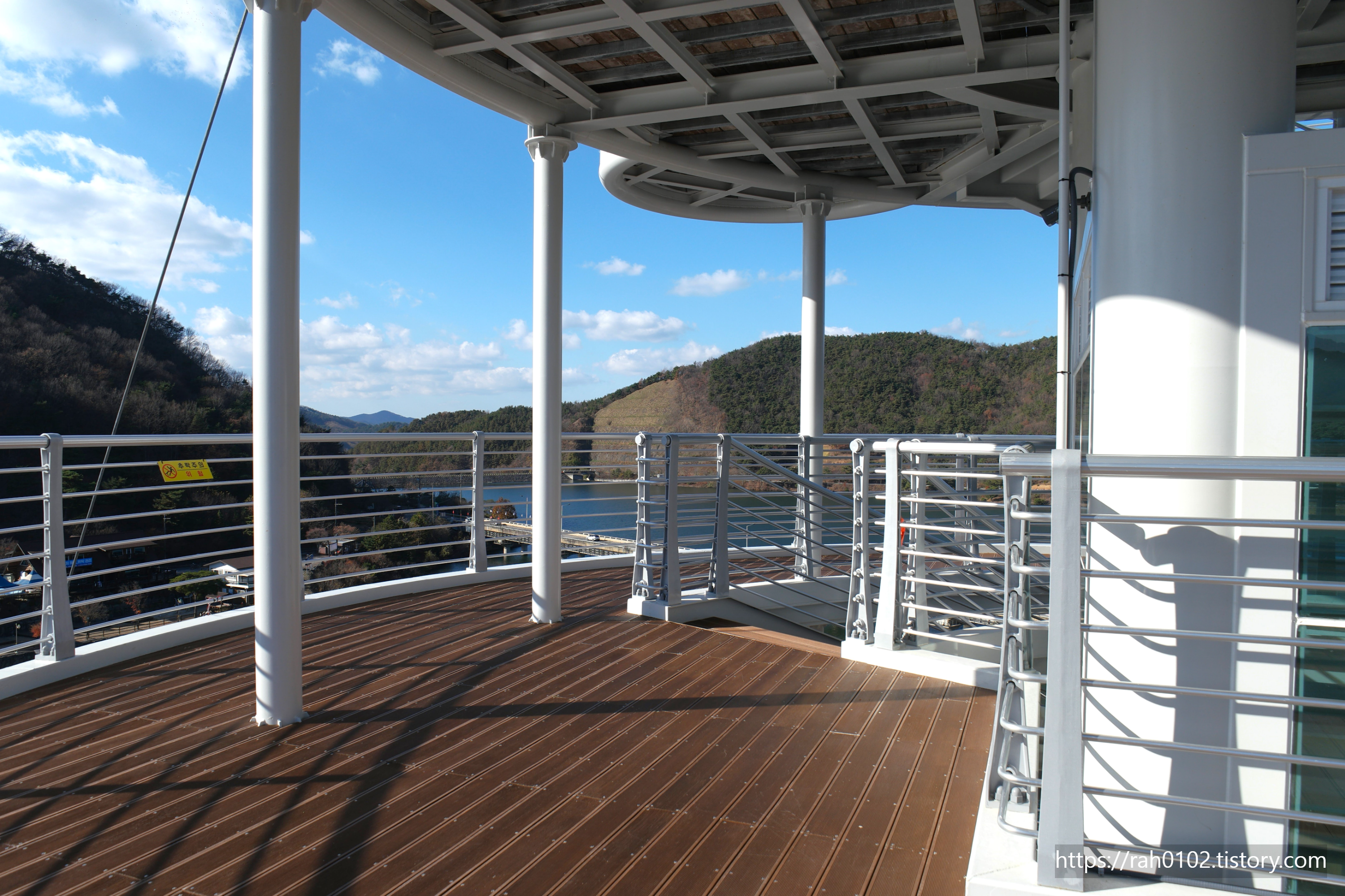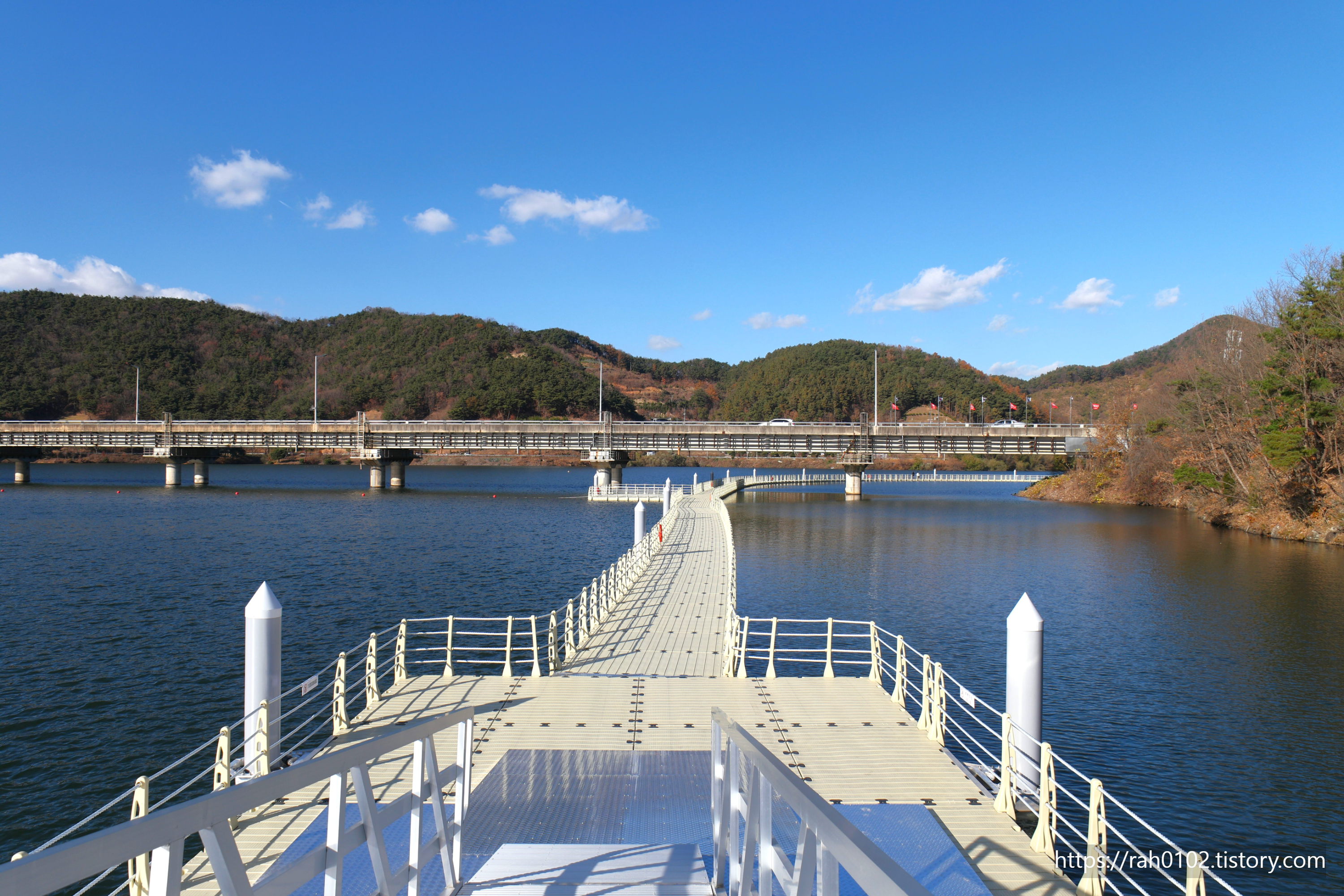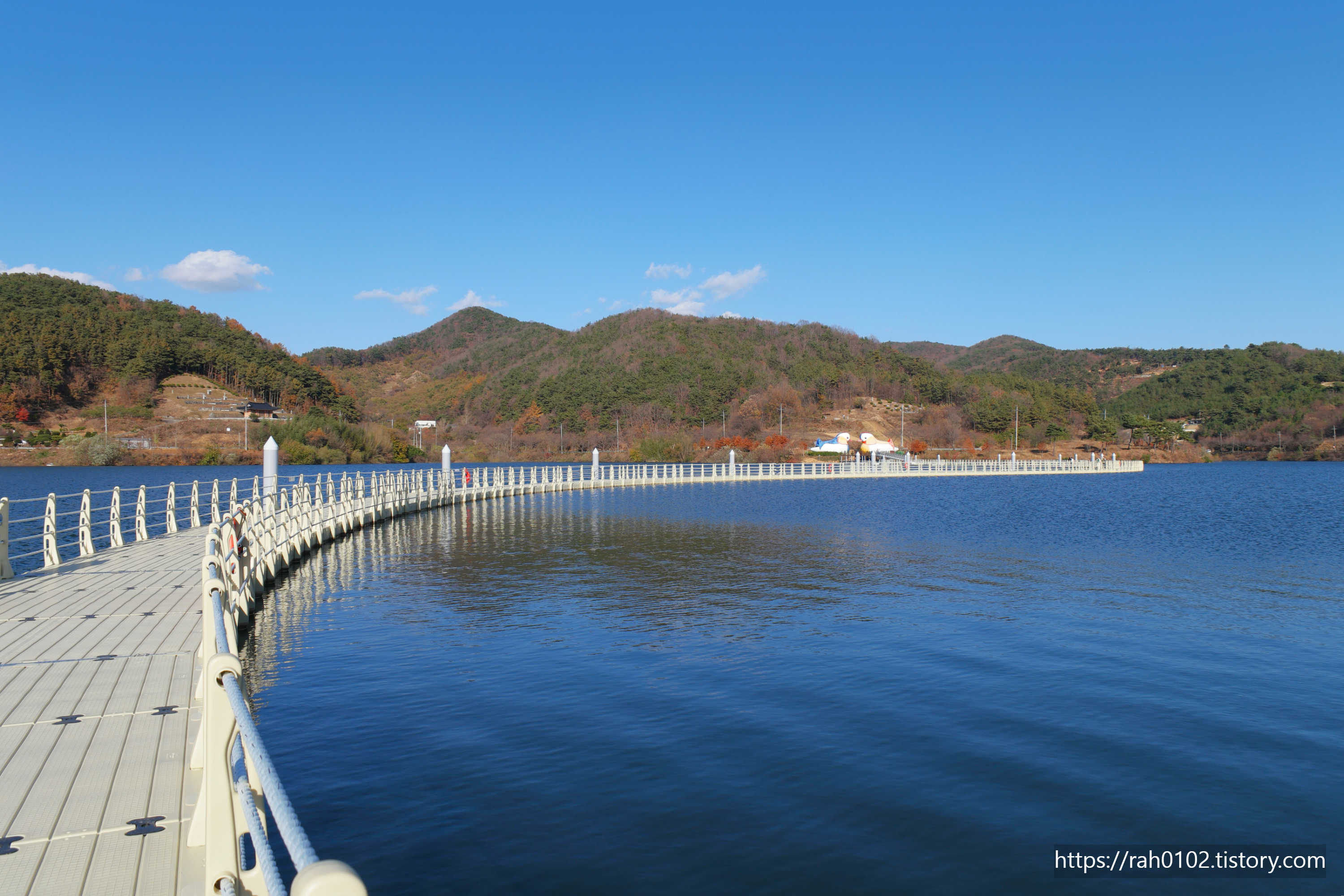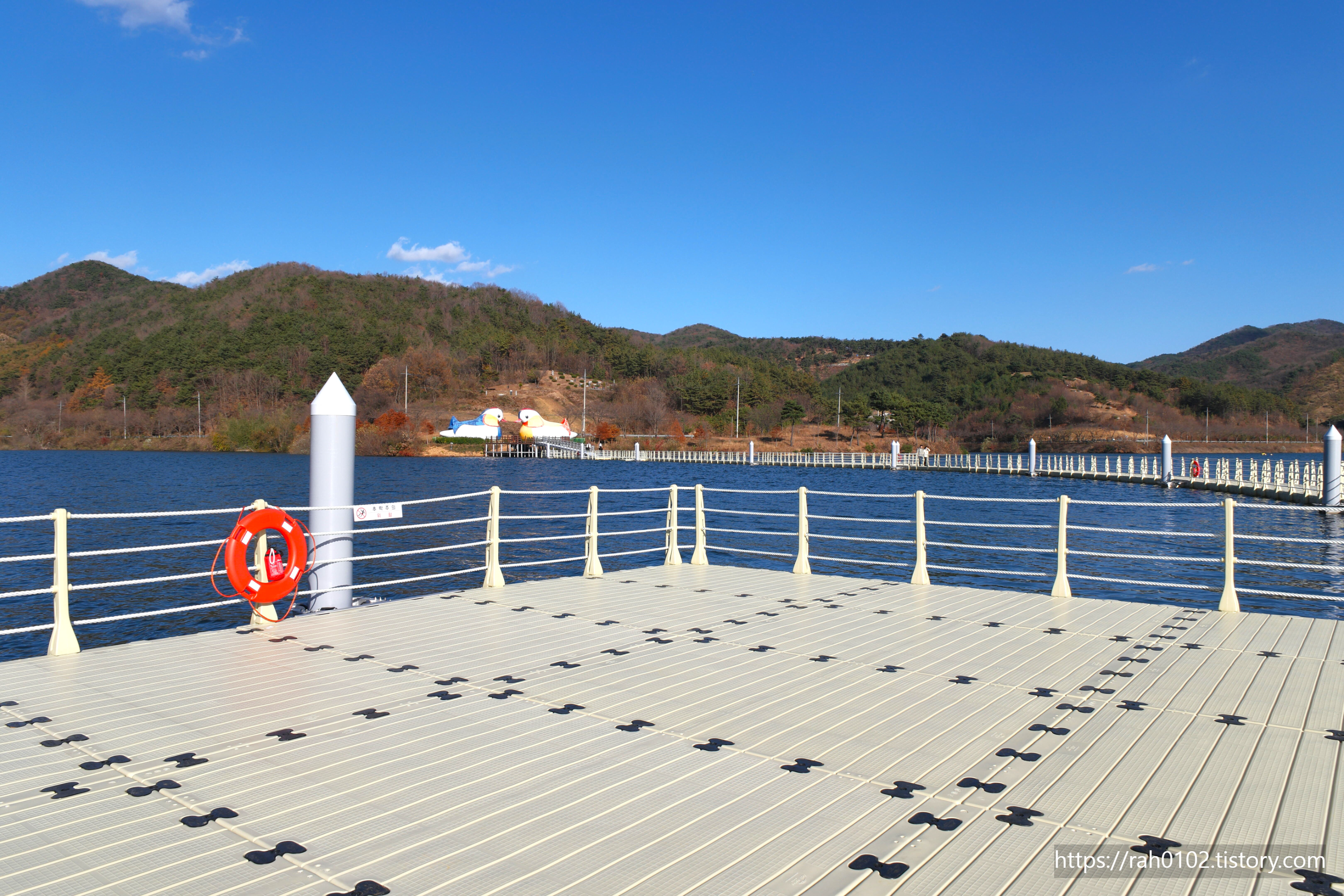 호수 위에 설치되어 있는 보행교를 걷기 위하여 엘리베이터를 타고 전망대 아래로 내려왔습니다. 현장 안내 직원분의 말에 의하면, 전망대를 기준으로 2개의 보행교가 설치되어 있는데, 한 곳의 길이는 150m이며, 다른 한 곳의 길이는 450m라고 했습니다. 먼저 150m 짜리 보행교를 걷기로 했습니다.