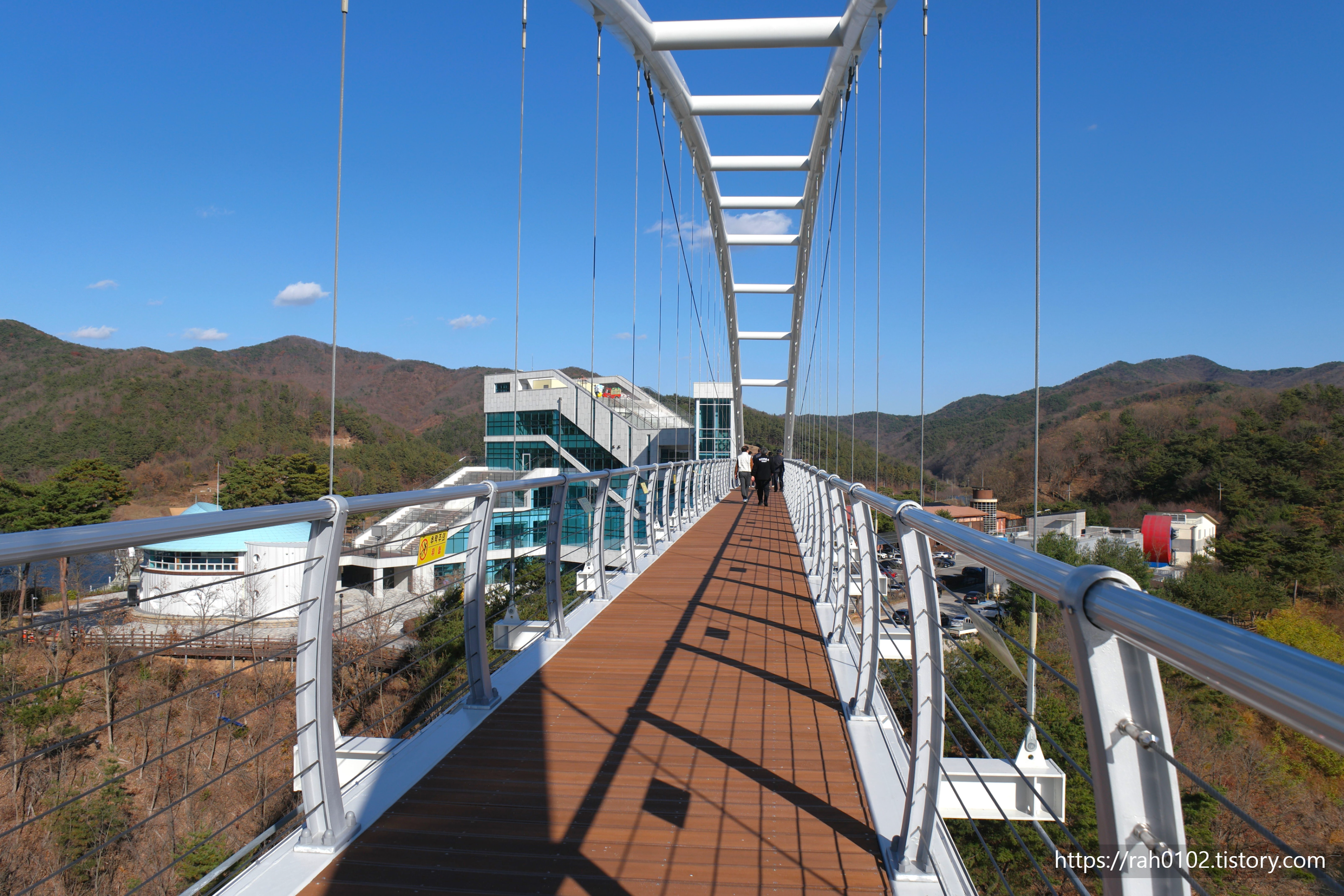 칠갑타워를 출발하여 전망대를 향하여 스카이워크를 걷고 있습니다.