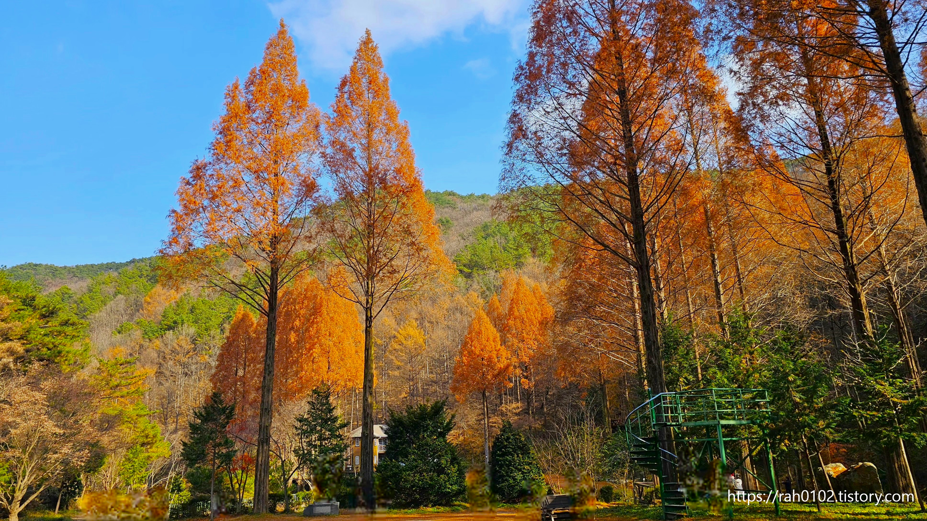 붉게 물든 메타세쿼이아 잎이 절반 정도는 떨어진 상태였지만 아직까지는 볼만했습니다.