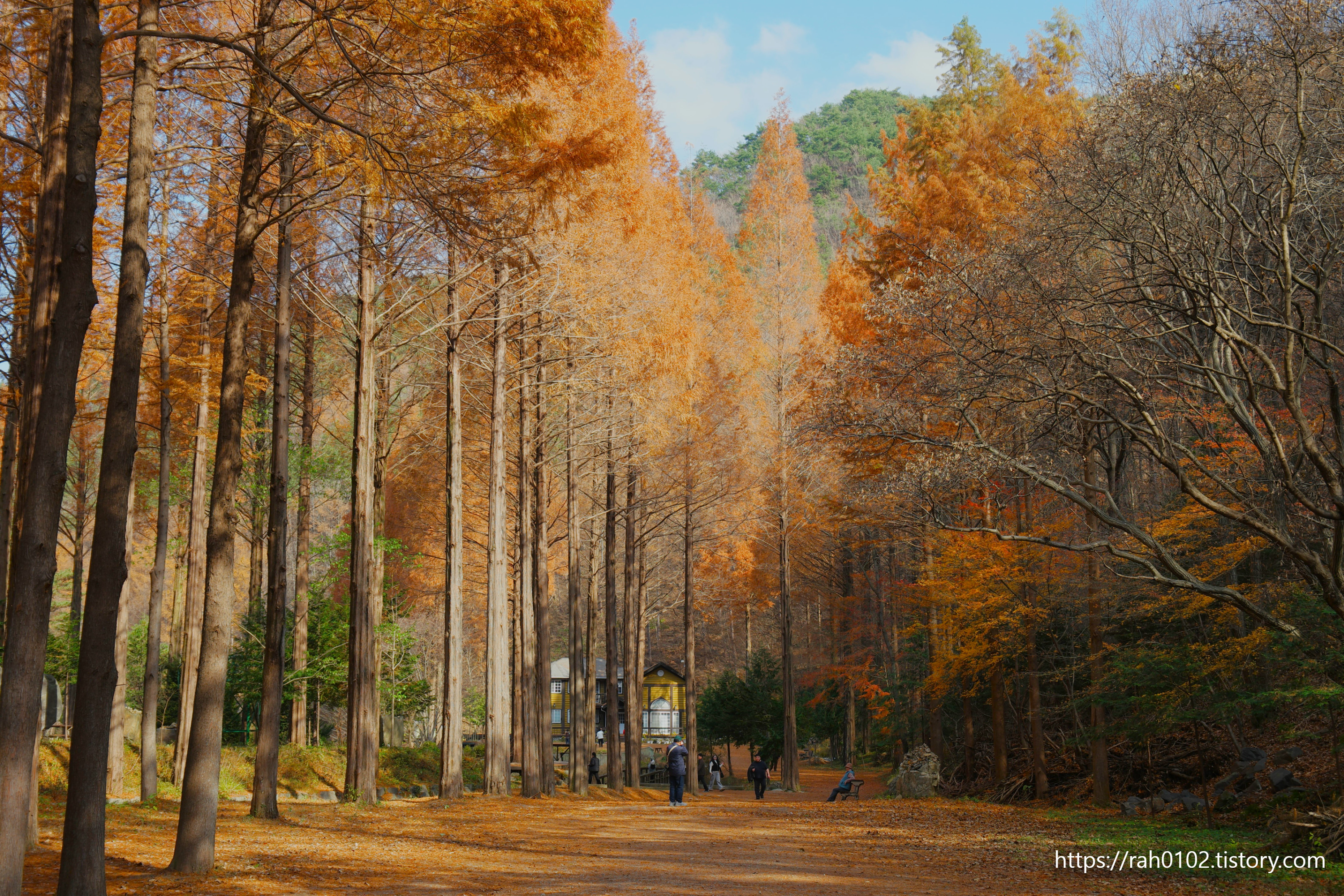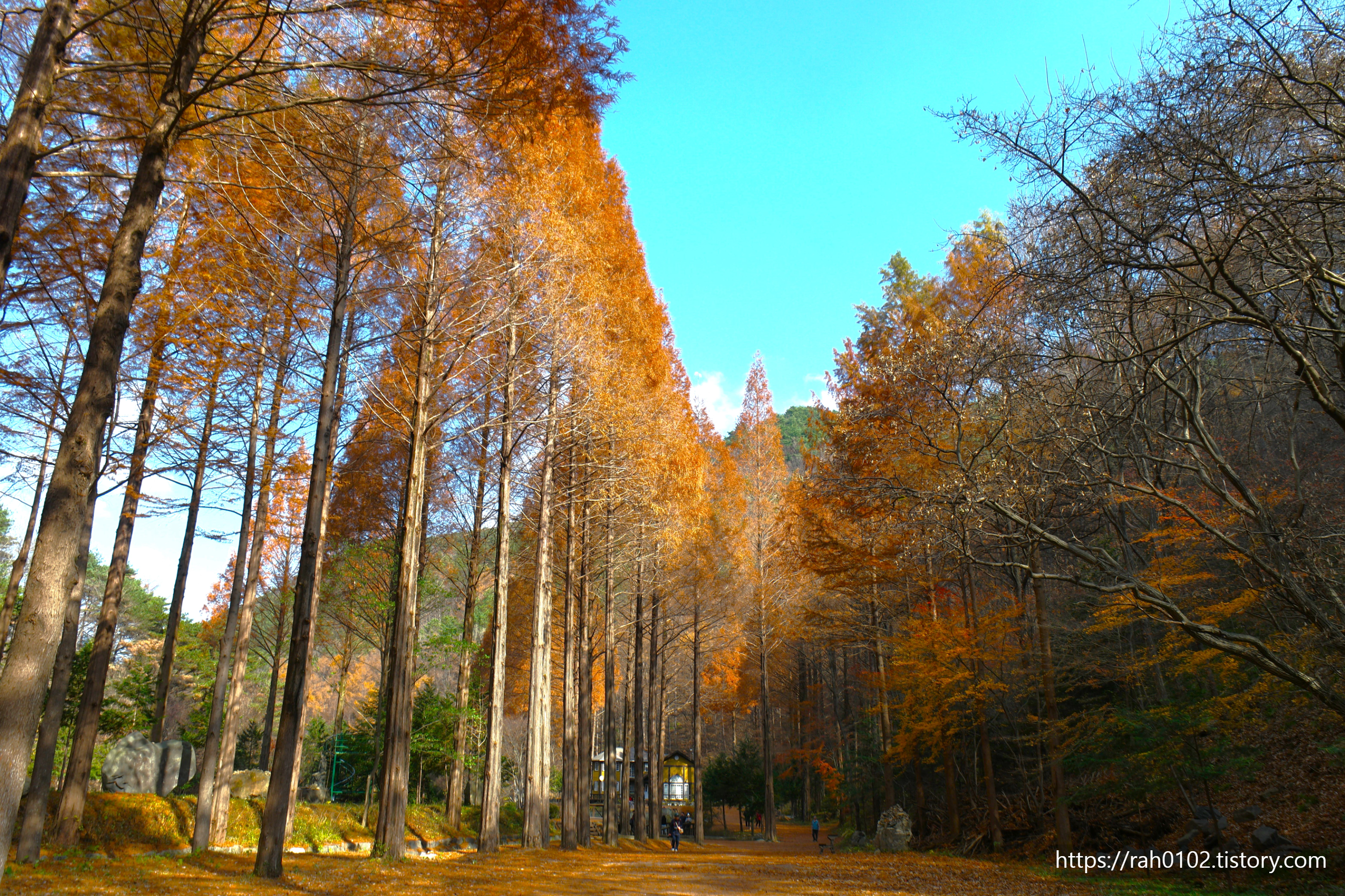 붉은색 양탄자를 깔아놓은 듯 바닥에 메타세쿼이아 잎이 수북히 쌓여 있습니다.