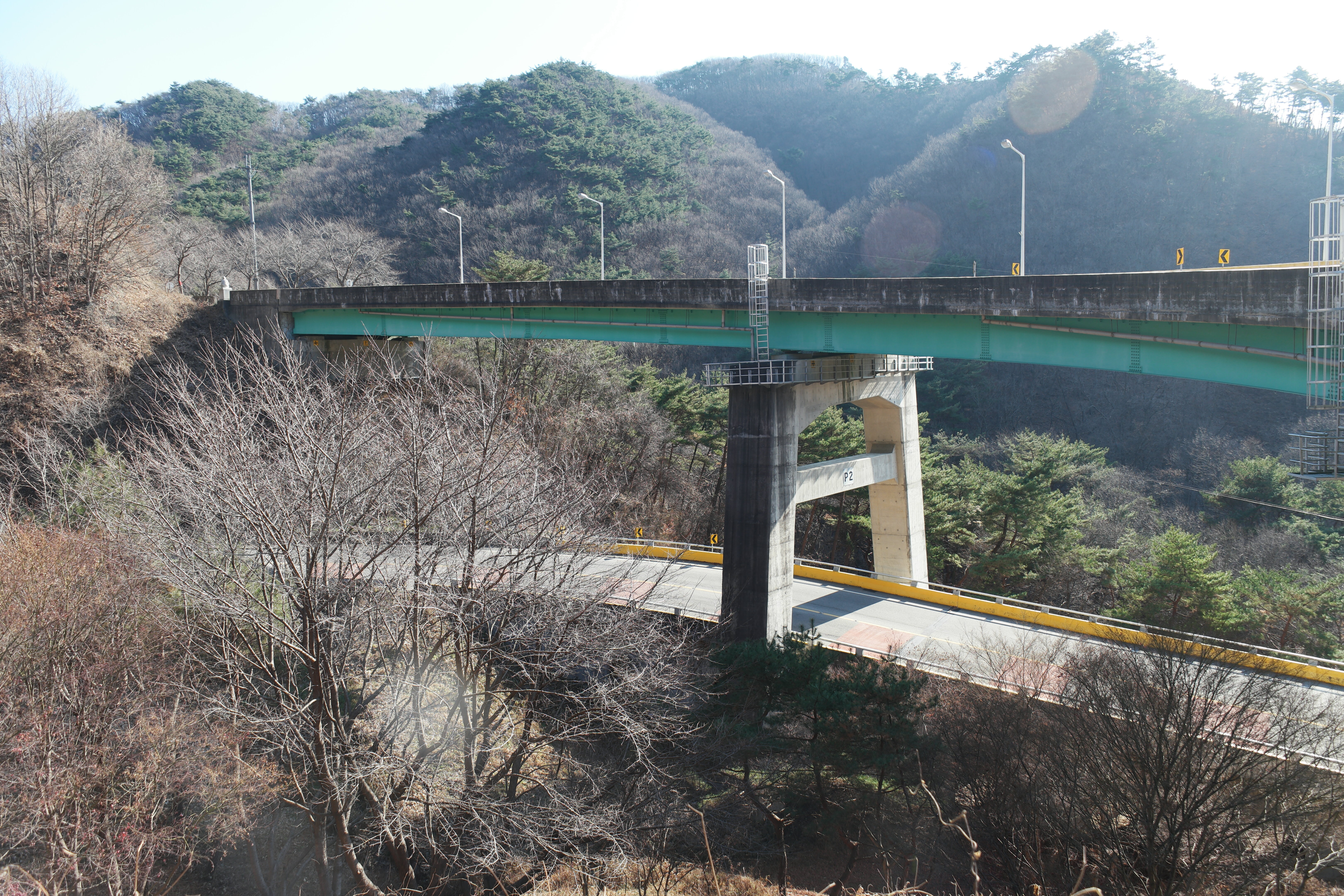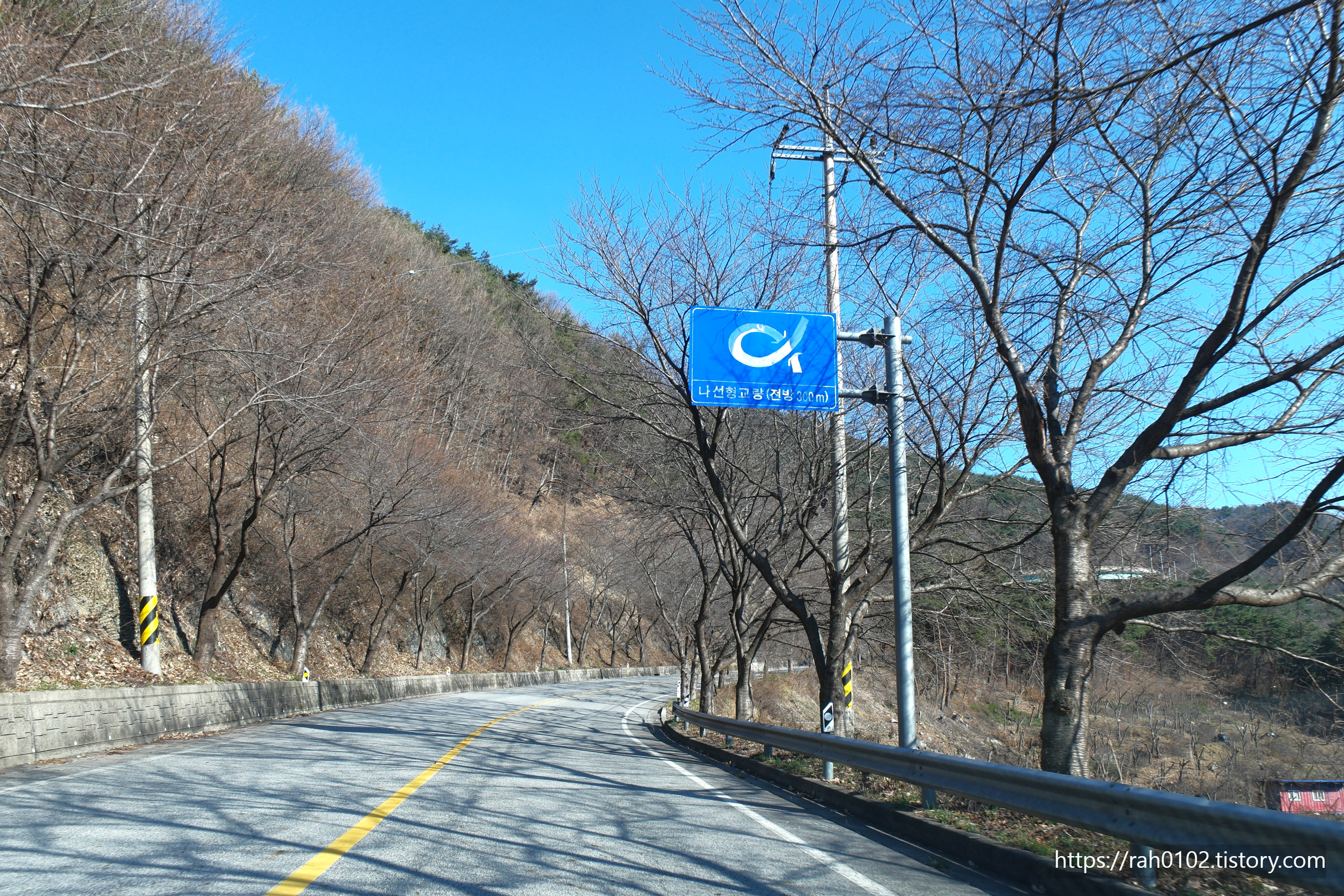 충남 청양군 군도 11호(장평면 지천리~정산면 신덕리, 12.7㎞) 노선 중 장평면 지천리에는 360°를 회전하는 2층 나선형 구간이 있습니다.