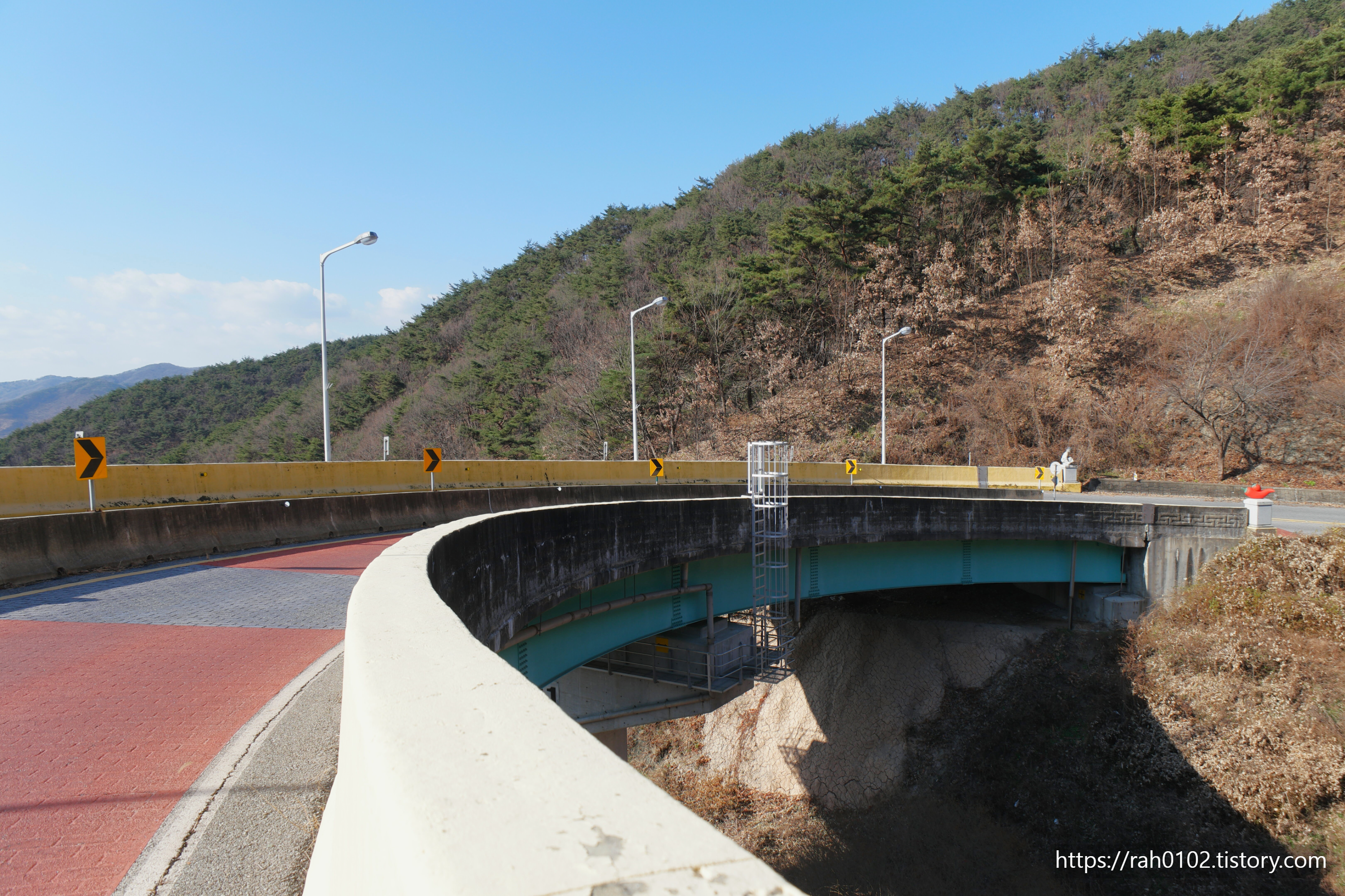 청양 나선형도로는 차가 원을 그리며 고도를 높여가는 구조여서, 차를 타고 하늘을 달리는 듯한 경험을 선사하는 멋진 드라이브 코스라고 합니다.