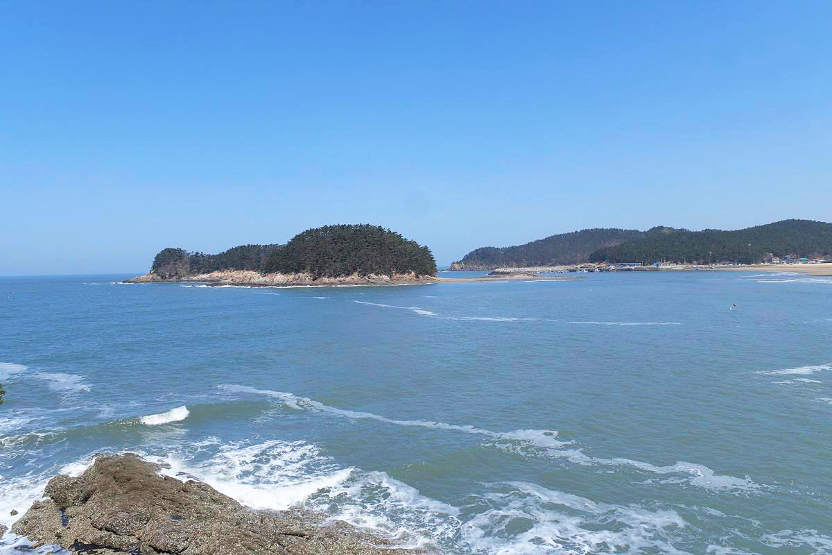 저곳이 '물닭섬'입니다. 물닭섬은 만리포해수욕장 윗쪽 끝자락에 위치하고 있습니다.