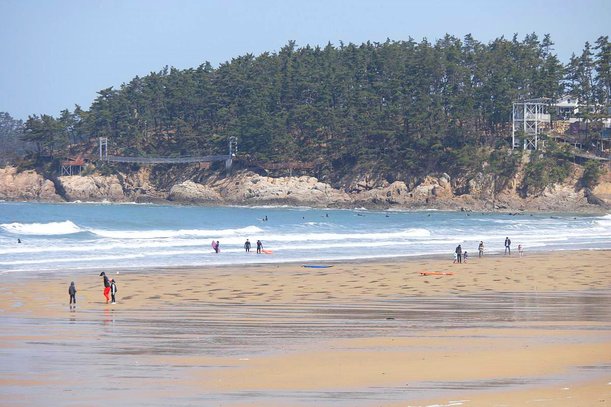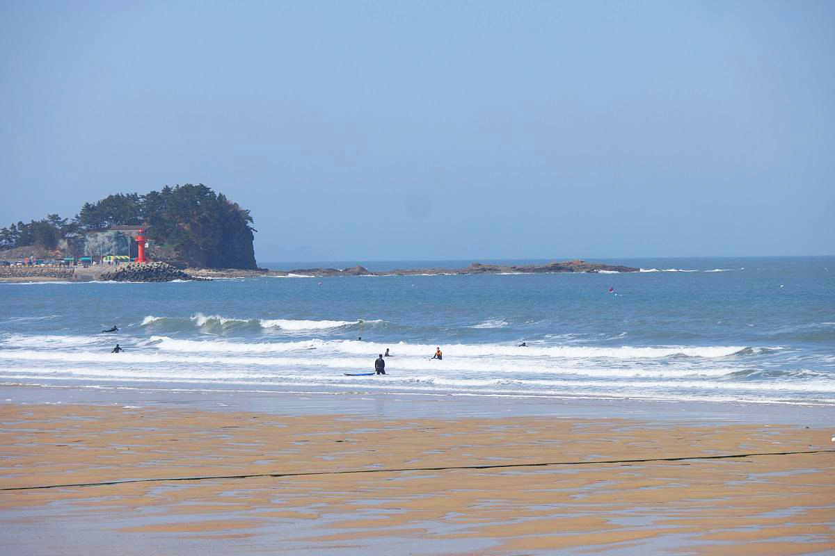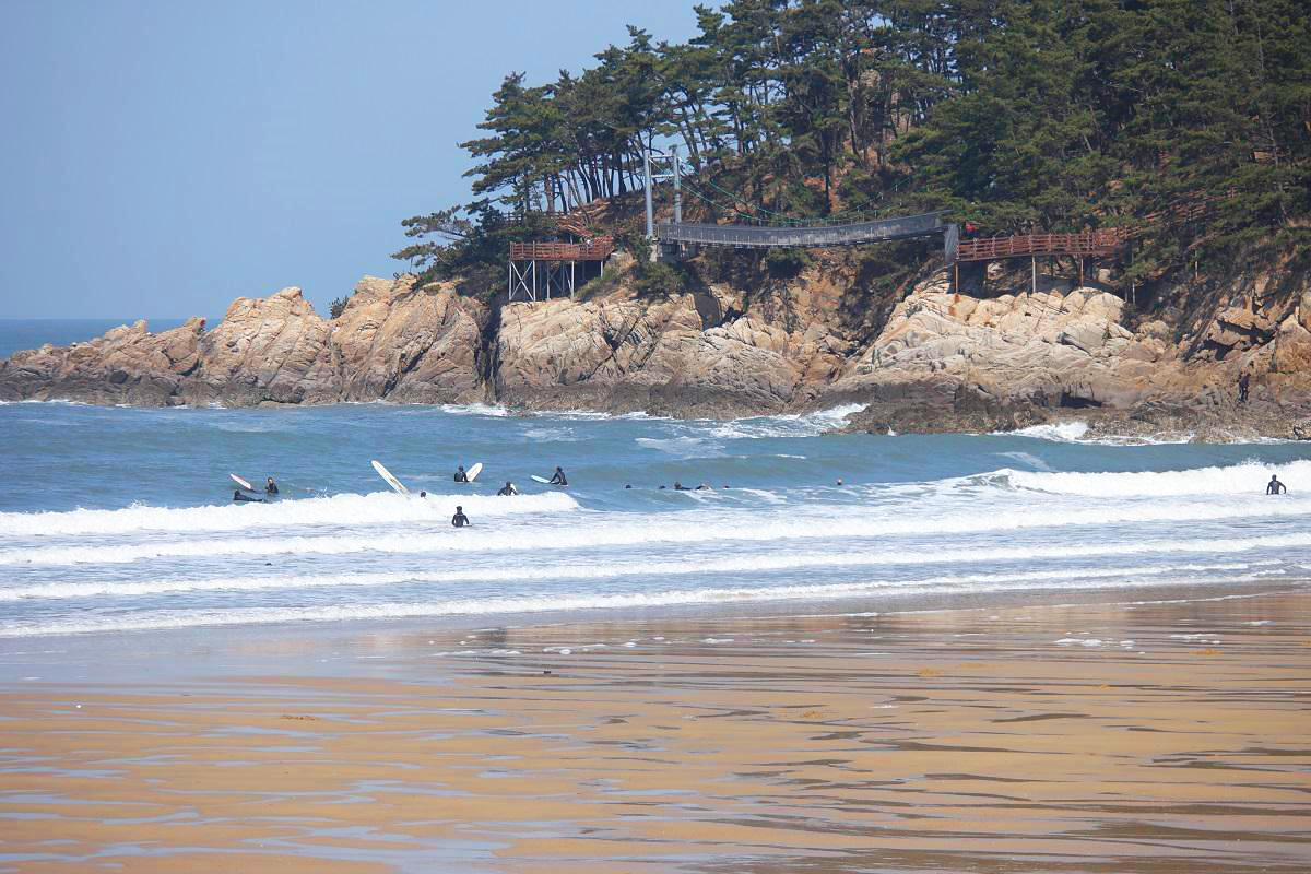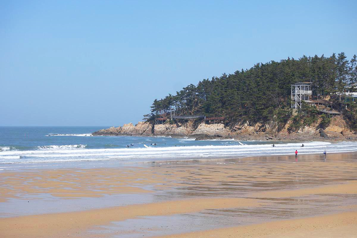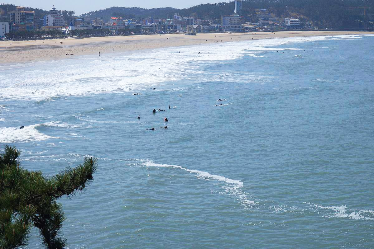 만리포해수욕장은 서핑의 명소라고 합니다. 물닭섬을 향해 만리포해수욕장 해변을 따라 걸으면서 서핑을 구경했습니다.